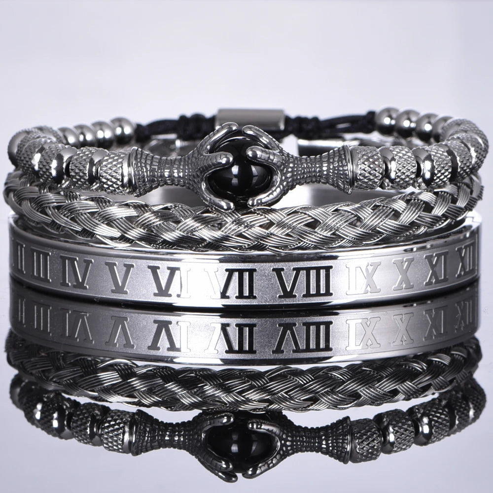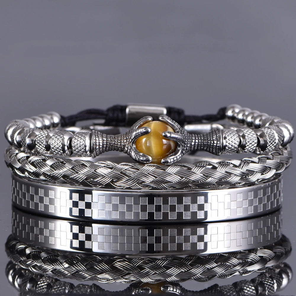 Luxury Set Men Bracelet Stainless Steel Handmade Rope Bangles Men Eagle Bracelets With Tigereye Natural Stone Gift Accessories