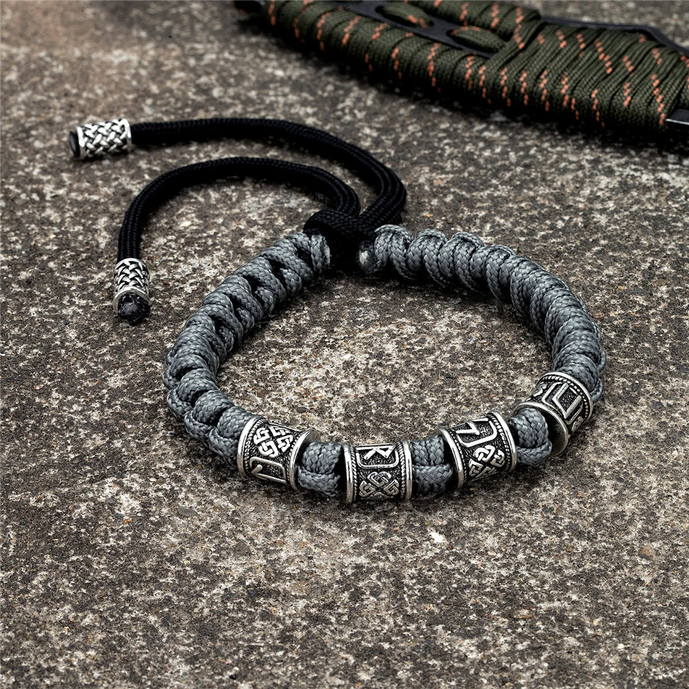 Norse Runes Beads Bracelet Men Vikings Accessories Braided Survival Paracord Rope Wristband Handmade Outdoor Amulet Bangle homme